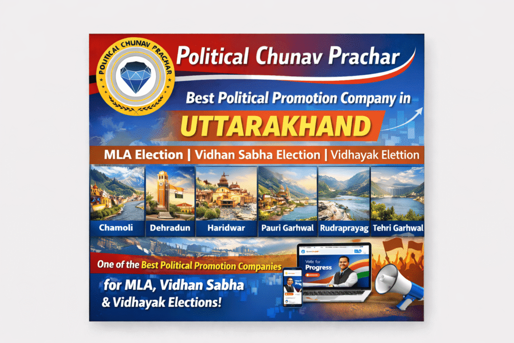 Political Chunav Prachar is one of the best and most trusted political promotion companies in Uttarakhand, known for managing high-impact digital and strategic campaigns for MLA, Vidhan Sabha, and Vidhayak elections.
